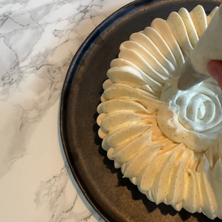 - Pocher un cordon de chantilly au centre de la pavlova.