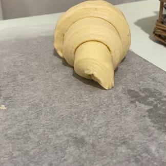 - Détailler ensuite vos croissants : détailler des triangles de 9cm de base et 30cm de hauteur. Rouler le croissant.